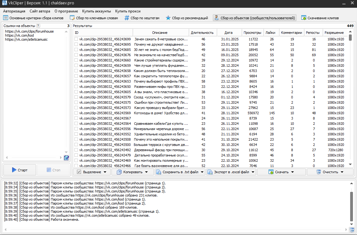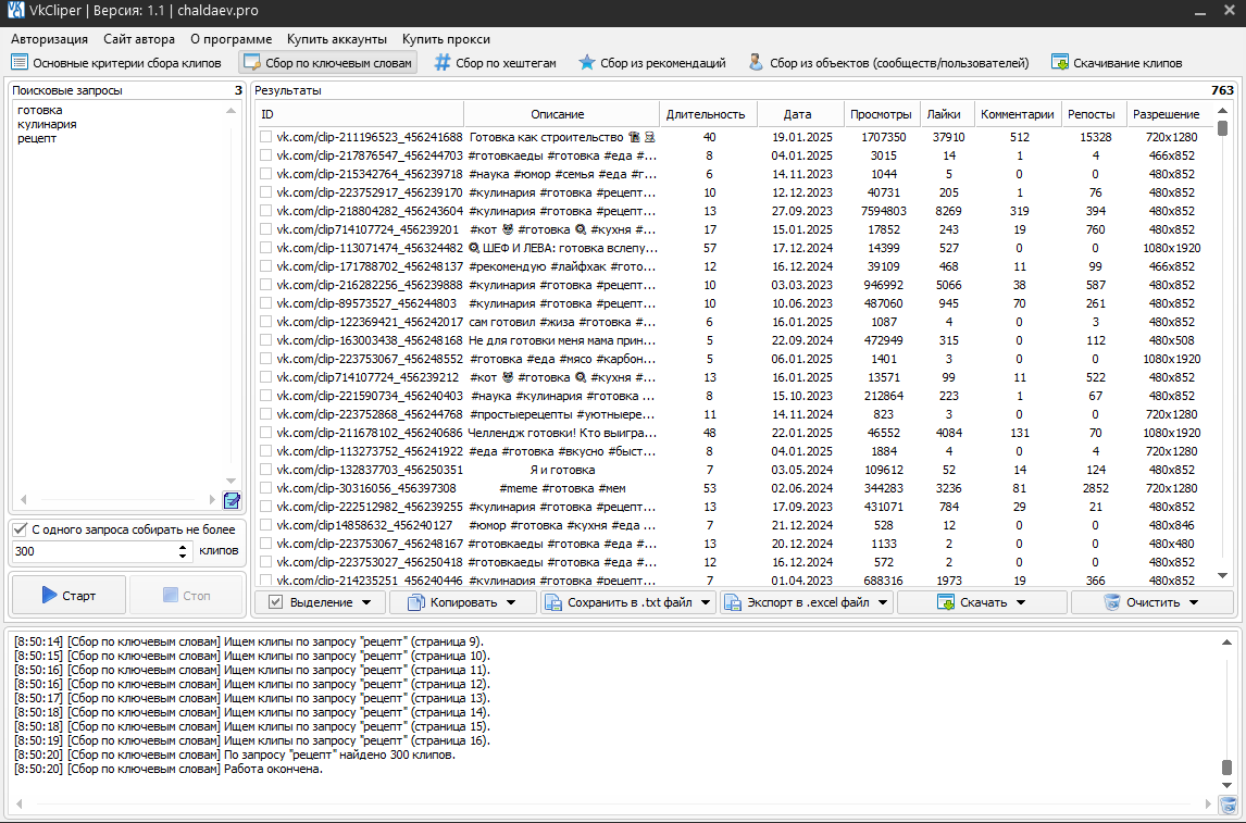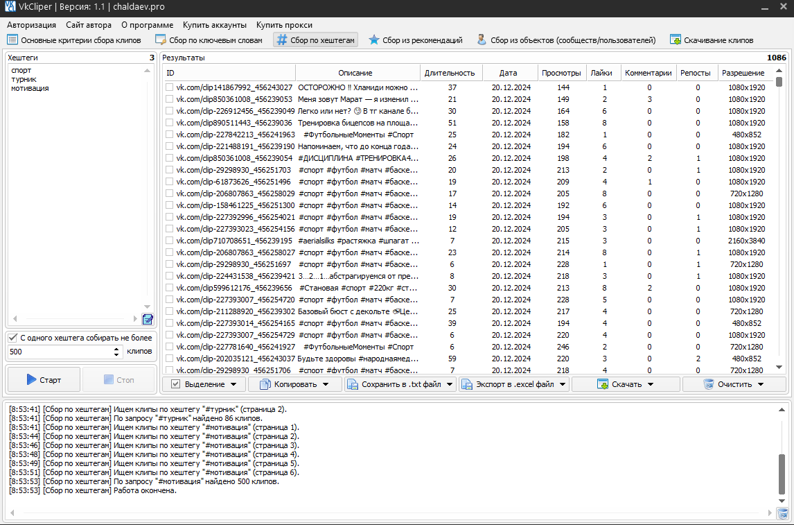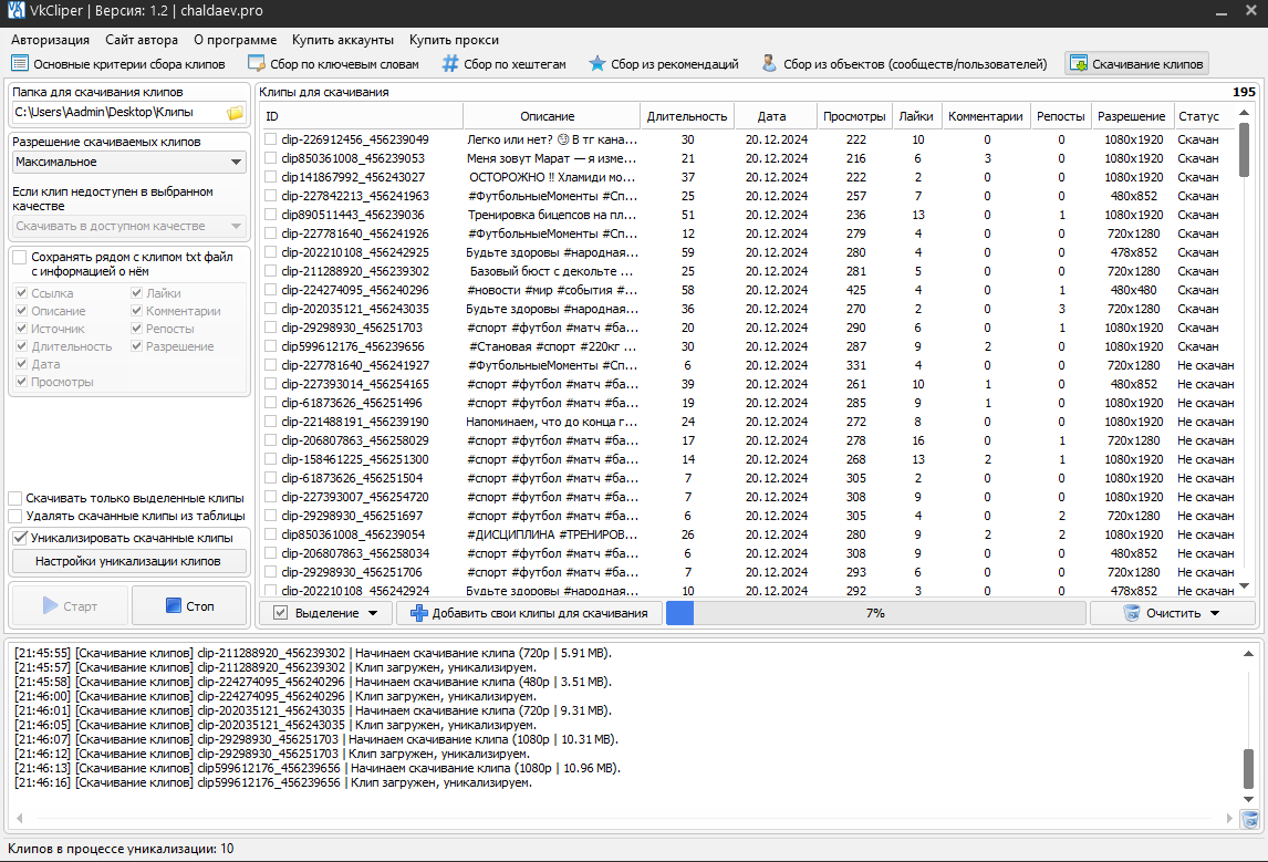 Быстрый парсер с простым и удобным интерфейсом, который поможет собрать, скачать и уникализировать для вас клипы ВК по критериям