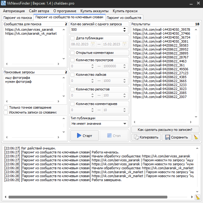 Возможность парсить по точному совпадению (чтобы в посте было именно такое сочетание слов, как в программе)
